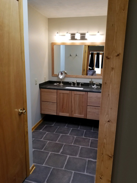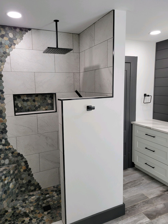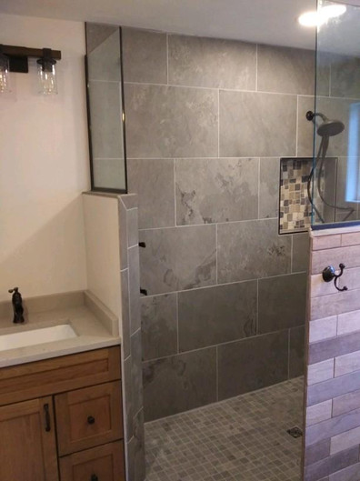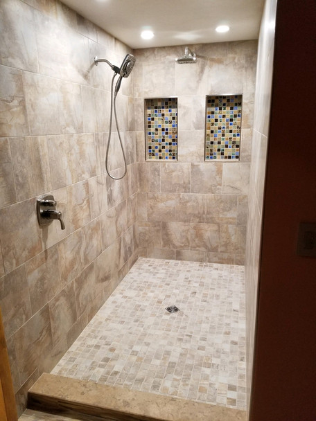 Custom shower stall with some very unique tile selections, radiant heat floors with custom floating vanity! Let's put something together for your bathroom!!